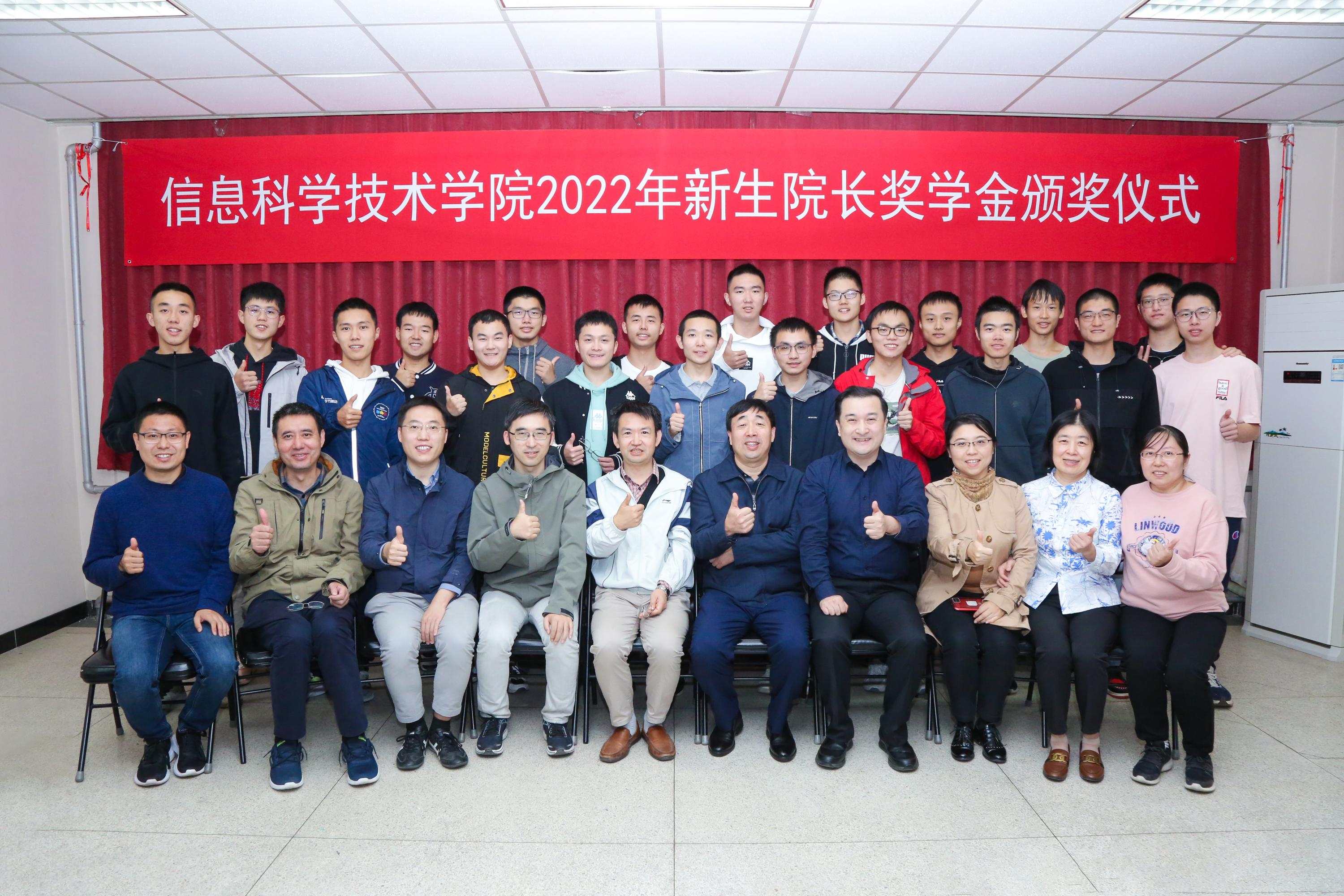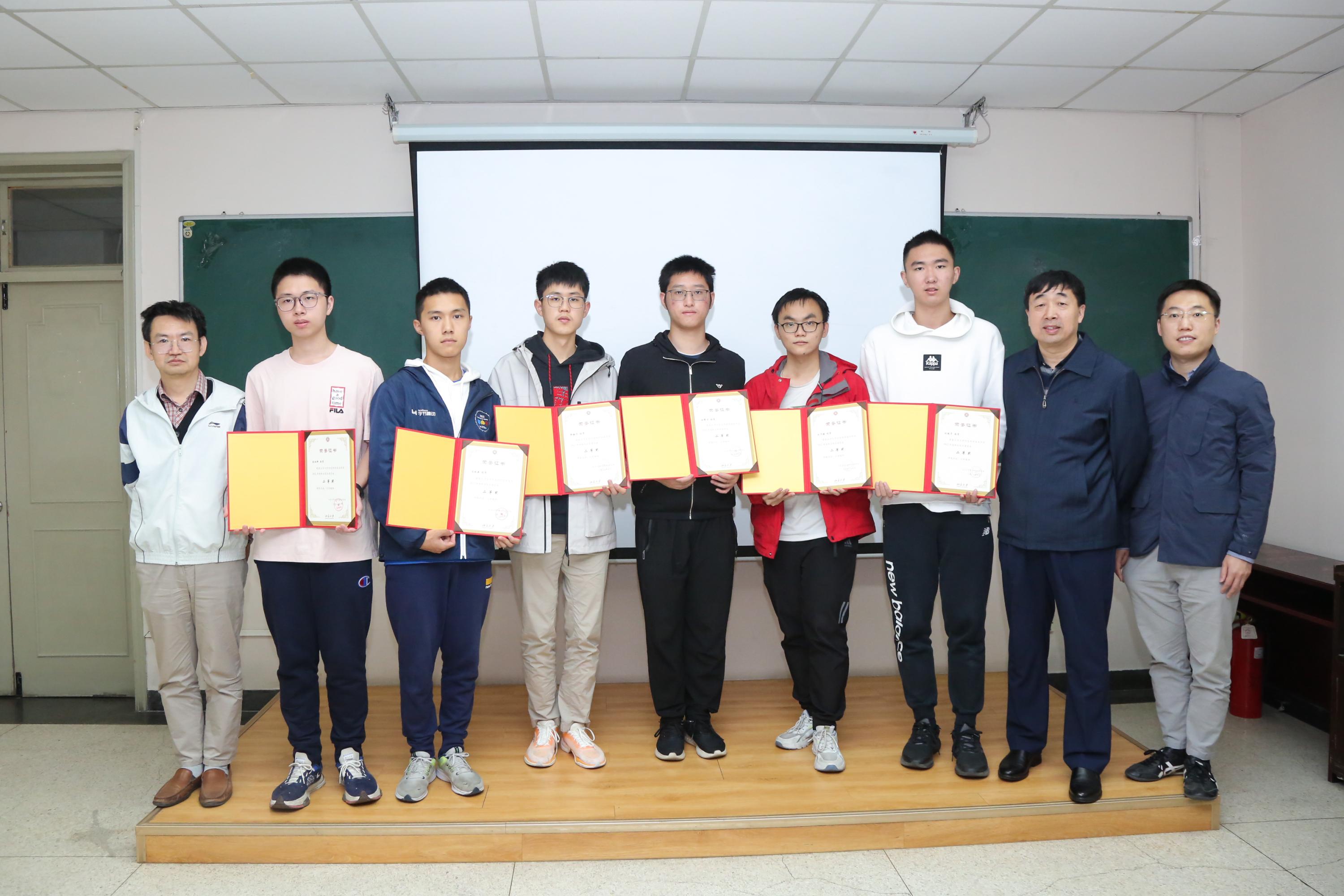 最后,学院领导老师分别为获得新生院长奖学金一等奖和二等奖的学生颁发获奖证书并集体合影。