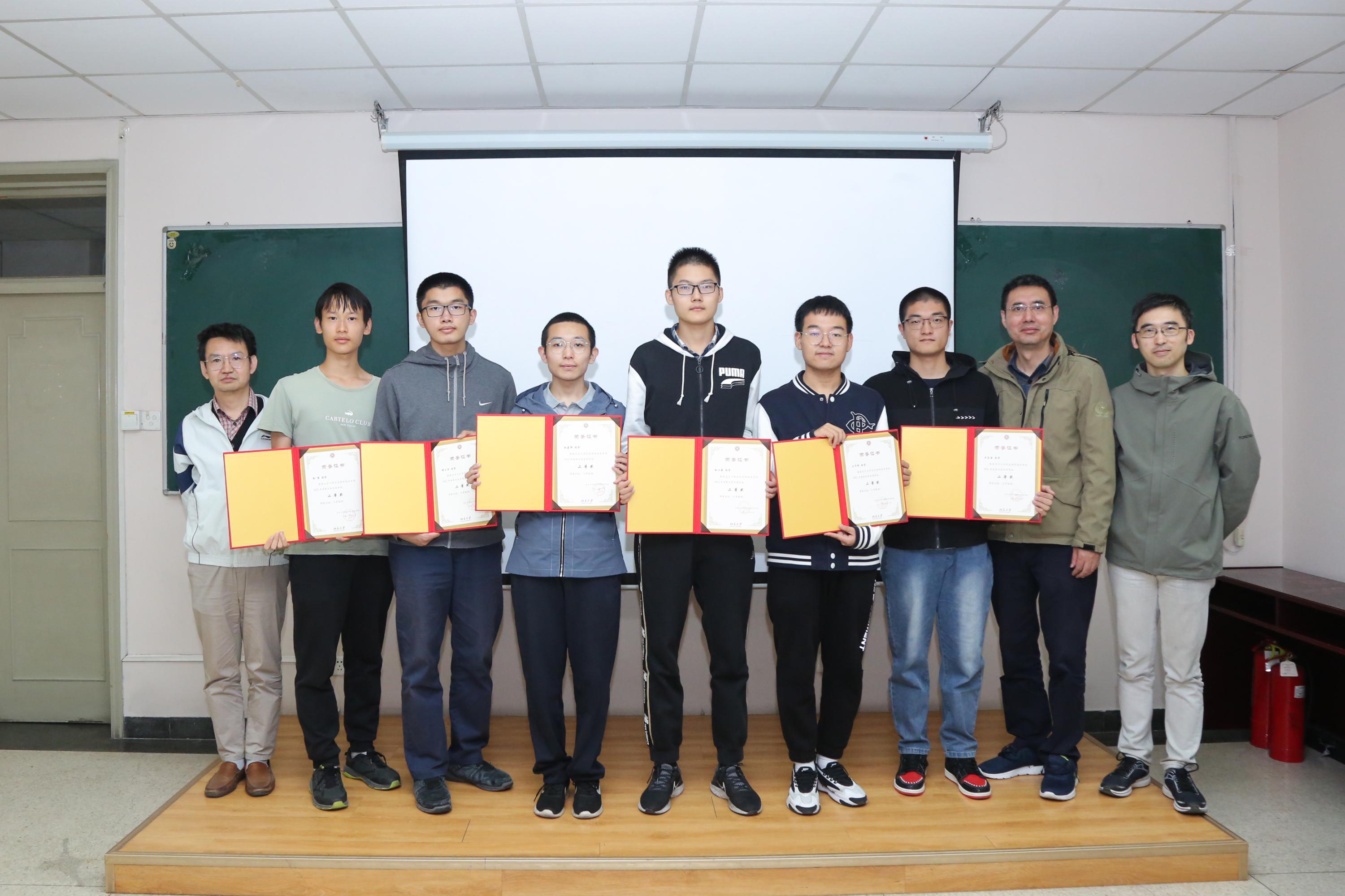 学院领导老师分别为获得二等奖的学生颁奖