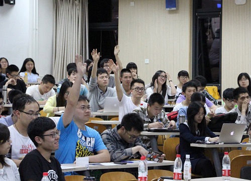 活动现场,同学们踊跃提问