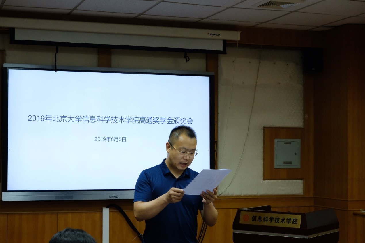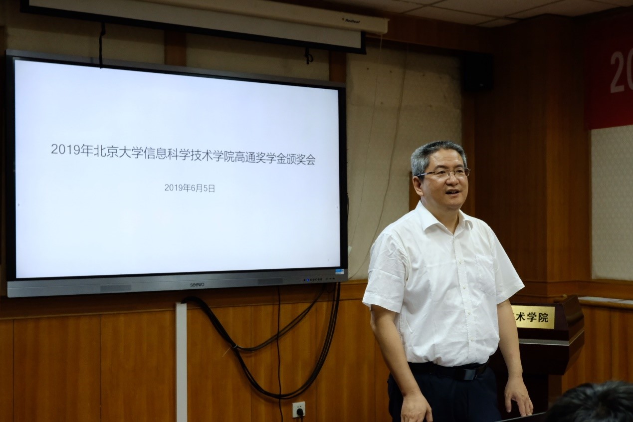 常务副院长谢冰、党委副书记熊校良、电子学系副主任兼现代通信研究所所长宋令阳、智能科学系副主任邓志鸿、数字媒体研究所副所长马思伟、美国高通公司中国区研发负责人兼工程技术总监徐晧博士、高级资深工程师黄寅先生、人力资源部余萌萌女士以及获得本年度高通奖学金的同学们出席了颁奖会。颁奖会由美国高通公司中国政府事务部的曹楠女士主持。