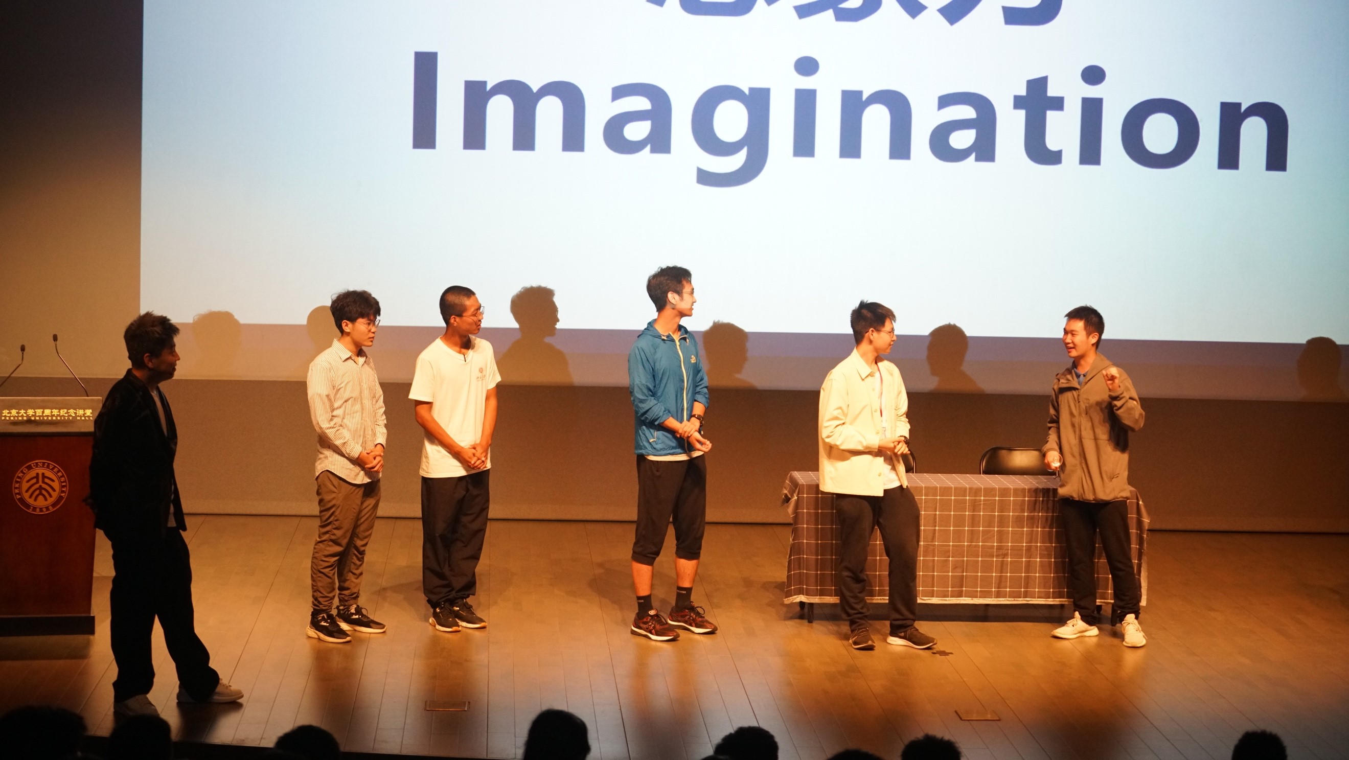 特别值得一提的是,活动过程中穿插了形式多样的互动环节,同学们走上舞台体验专业演员“呼吸”、“想象力”等基本功,在老师的启发下,同学们即兴表演了一个个情景小剧,台下不时爆发出掌声,为台上同学精彩的临场表现而喝彩。