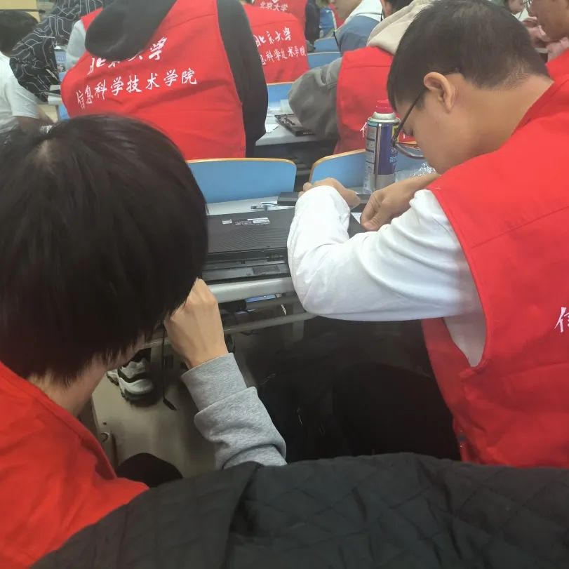 忙碌的时间总是过得很快,渐渐活动已经接近了尾声,电脑问题陆续得以解决,电脑小队的志愿者们在欢笑声中将器件归类、收纳,以方便下次取用。