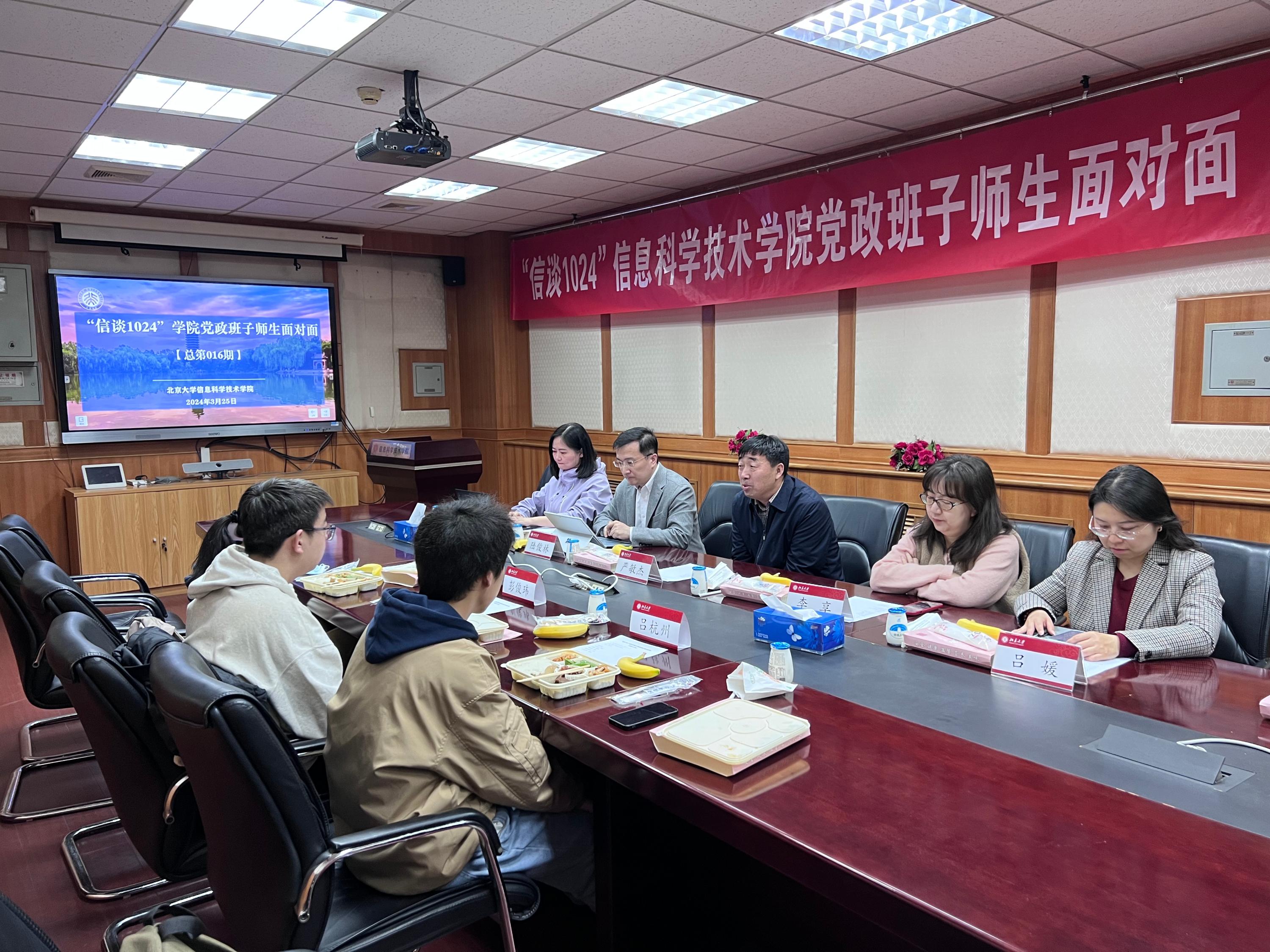 师生交流品牌活动,首期活动于2023年3月10日举办,并固定在每月10日及24日开展。通常每月10日为个人单独面谈,每月24日为多人群体座谈。“1024”是2的10次方,这个和二进制相关的数字为信息学科师生所熟悉。活动旨在围绕学院人才培养这一中心工作,通过搭建学院党政班子和全院师生的日常面对面交流平台,大兴调查研究之风,广泛听取意见建议,破解学院发展难题,力求解决师生中长期存在的困惑或问题,凝聚共识,勠力同心,推进学院更好更快发展。