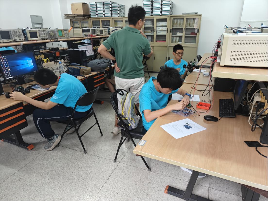 杨延军老师、电子学院吕国成老师、集成电路学院叶红飞老师带领营员们在动手操作的过程中感受科技的神奇。