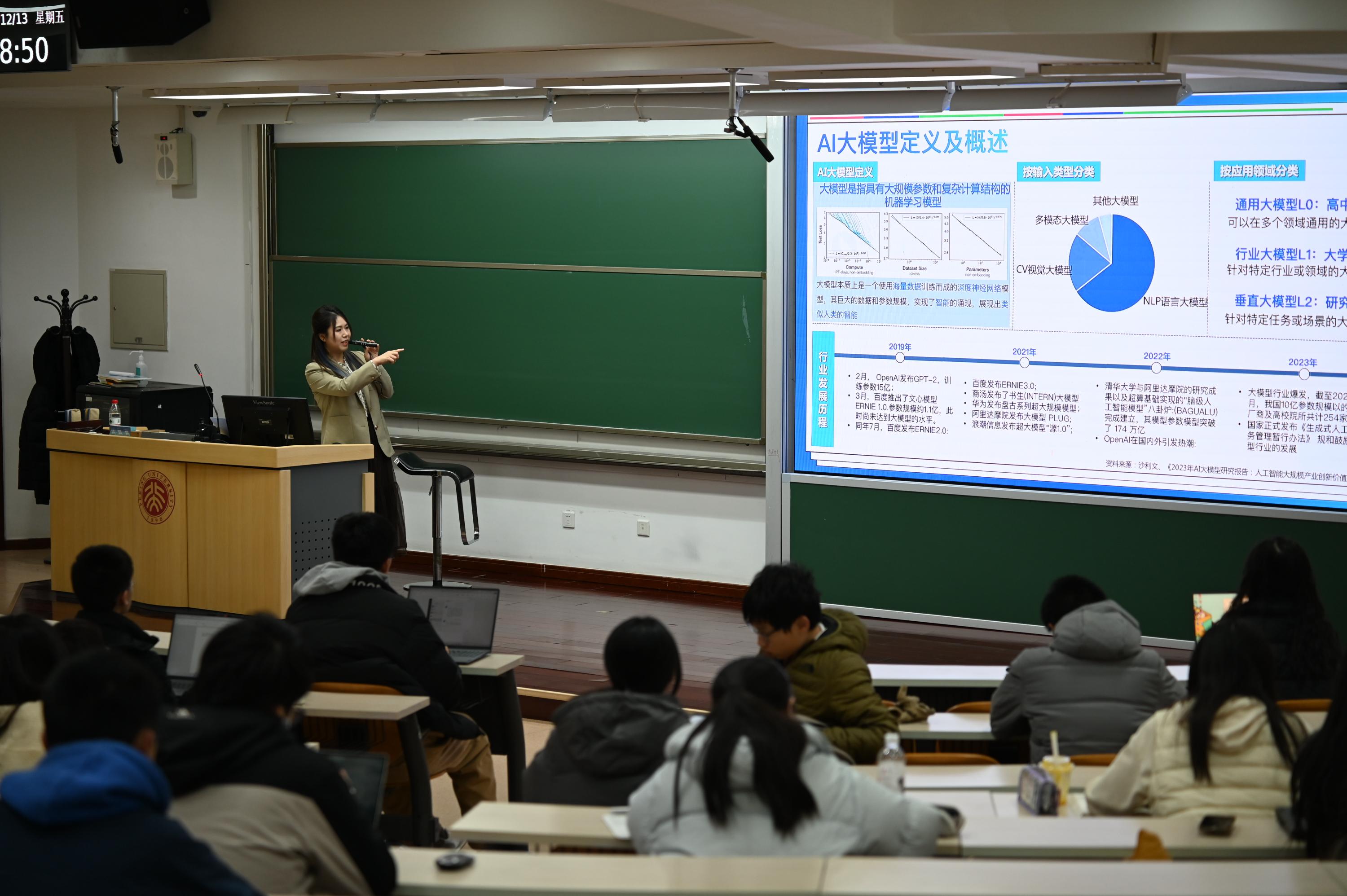 讲座第一部分聚焦 AI 大模型。容薇女士先介绍其定义,它是具大规模参数和复杂结构的机器学习模型,本质是海量数据训练的深度神经网络,能实现智能涌现。还讲了按输入、应用领域的分类情况。