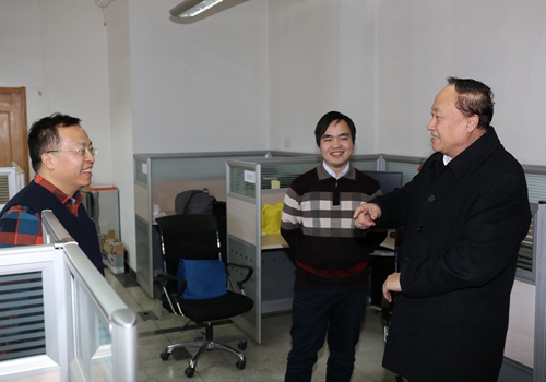 由于春节后要去美国参加动态图像专家组(MPEG)紧凑视觉描述子国际标准会议,所长、实验室副主任黄铁军教授带领博士研究生陈杰放弃寒假,抓紧准备技术提案与数据实验。朱善璐书记详细询问了黄铁军教授有关技术标准的问题,并与之讨论拓展学科交叉研究的可能性和新兴方向等。