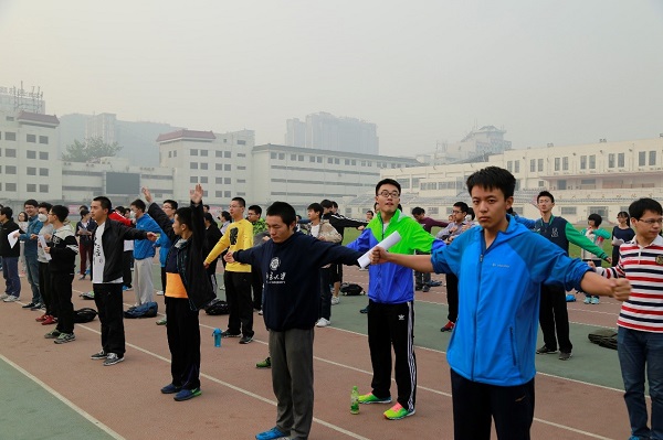 同学们进行赛前热身