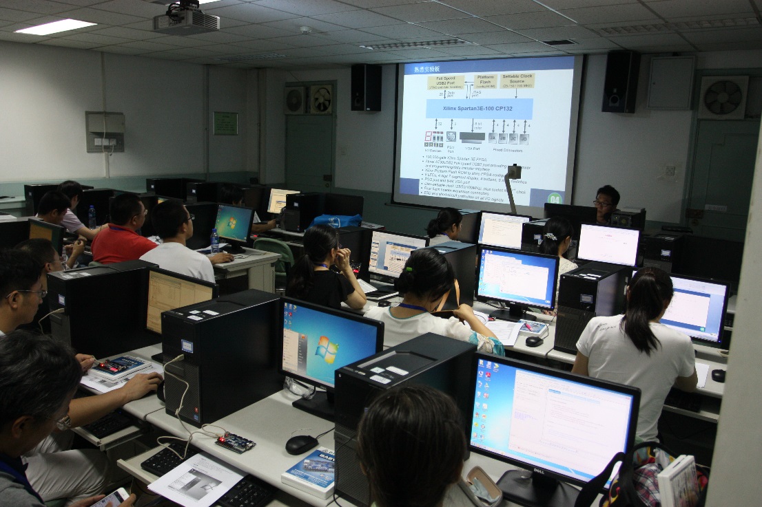 下午大会还安排了实验教学上机操作练习。在电子实验中心EDA实验机房进行了“口袋实验室”教学案例以及系统级设计与测试教学案例等教学模块的演练。通过实际的操作和练习,让与会师生对实验教学有了更深入,更直观的认识。