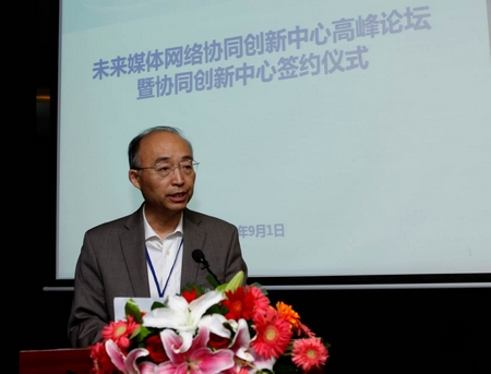 未来媒体网络协同创新中心的成立得到了国家各有关部门以及产业链各个环节的有力支持。教育部副部长杜占元,中国科协副主席赵沁平,中国科学院院士、中国工程院院士陈俊亮,中国工程院院士李国杰、倪光南、李幼平、邬江兴、高文、林忠钦,中国科学院院士梅宏,国家标准化委员会副主任方向、科技部高新司副司长胡世辉、国家发改委高技术产业司副司长徐建平、工信部电子信息产品司副司长刁石京、国家广电总局科技司盛志凡、中央电视台总工程师丁文华、广电总局规划院长姜文波、广电总局广科院总工程师杨杰出席了今天的高峰论坛和签字仪式。