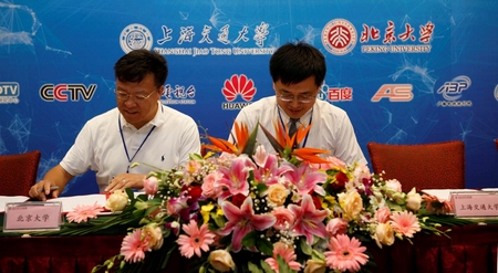高文、中央电视台丁文华、广电总局规划院姜文波、广电总局广科院杨杰、数字电视国家工程研究中心夏平建、华为中央研究院张爱东、百度公司王海峰、上海广播电视台张建、AVS联盟黄铁军共同签署了“未来媒体网络协同创新中心”章程。上海交通大学、av漫画