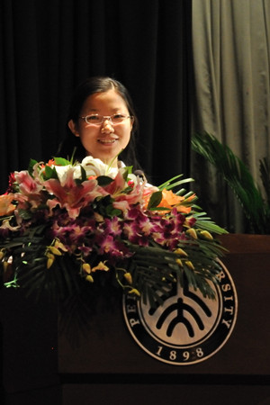 新生代表、2011级本科一班张璐瑶同学代表全体新生发言,她讲述了对信科人和北大人身份的认同感,表示将在老师的指点和学长学姐的帮助下尽快适应高中生到大学生的角色转换,做一个合格的北大人,并用“今日旗亭画壁,青梅煮酒笑谈天下;明朝栋梁成才,指点江山铸造辉煌”的诗句与全体新生共勉。