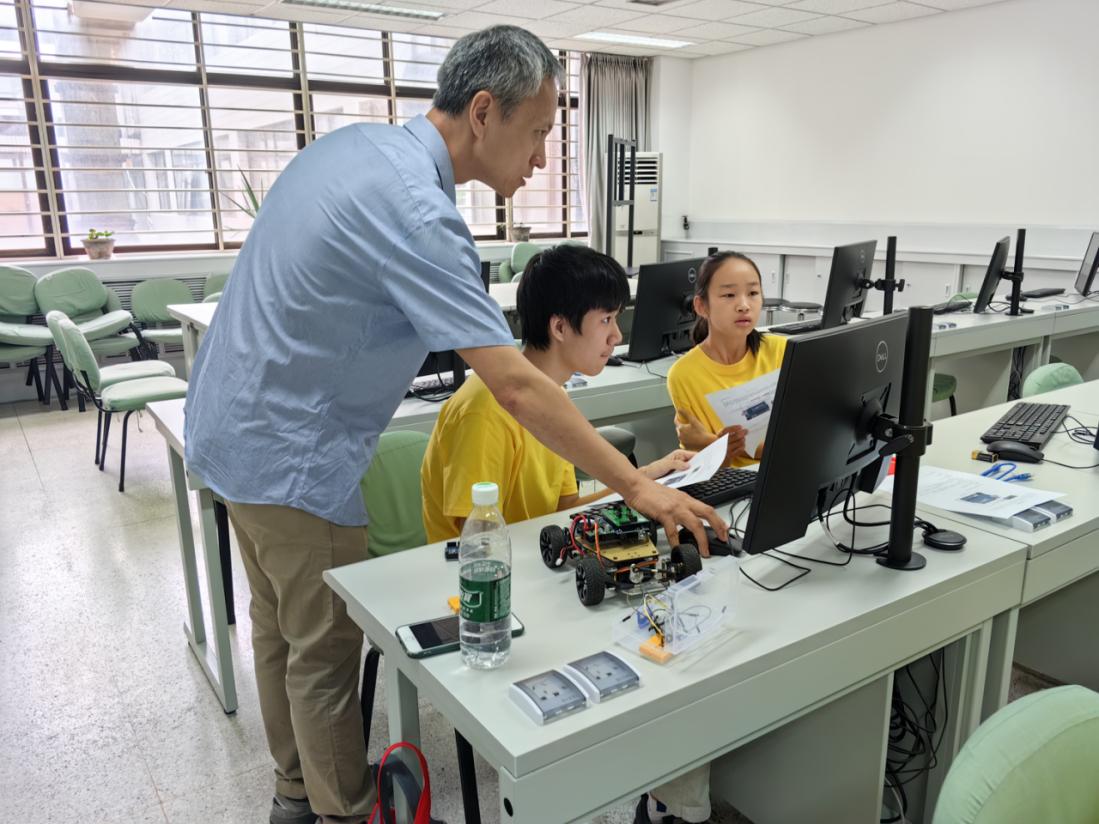 杨延军老师、电子学院吕国成老师、集成电路学院叶红飞老师带领营员们在动手操作的过程中感受科技的神奇。