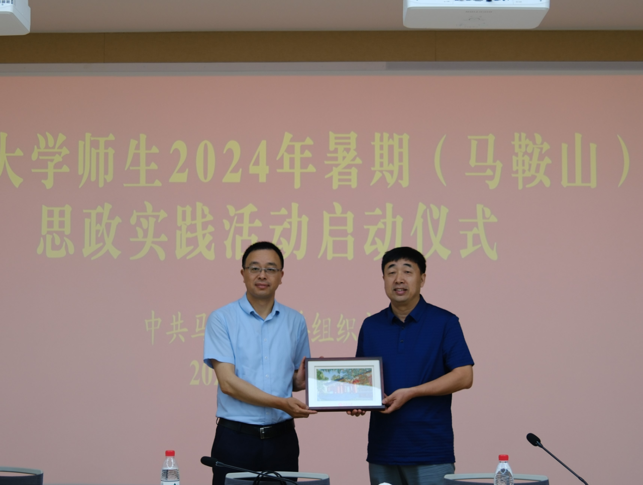 在仪式上,刘恒向同学们介绍了马鞍山市的总体情况和人才引进政策,体现了马鞍山市对人才引进的高度重视。严敏杰对马鞍山一直以来对信科学院的支持表示衷心感谢,对马鞍山近年来社会经济发展取得的成效表示赞许。他也介绍了北大信科学院的情况,鼓励同学们多多关注马鞍山这片热土,将来能有更多同学到这里建功立业。杨帅向实践团同学介绍了马鞍山市欣欣向荣的经济社会发展情况,同学们对马鞍山市有了深入的了解。