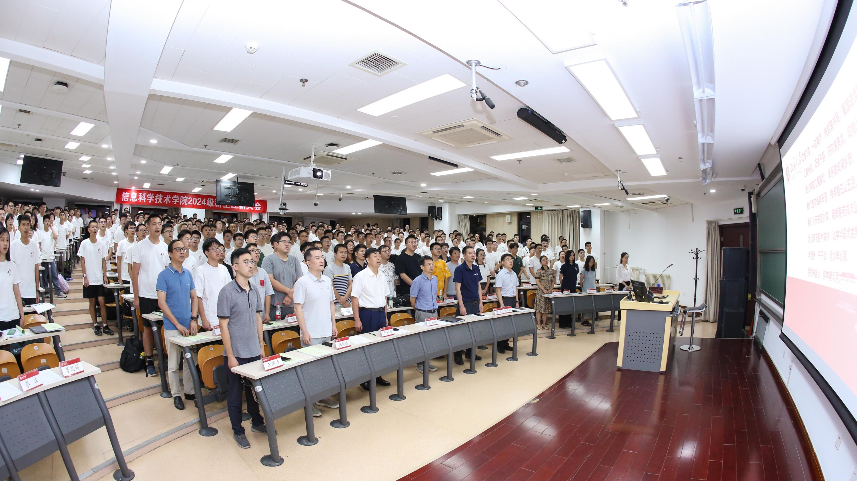 大会渐入尾声,全体师生共唱《燕园情》,以悠扬的歌声深情共鸣,唱出了每一位北大人内心深处的眷恋与情怀。“眼底未名水,胸中黄河月。”激昂的旋律激励着每一位新入学的信科学子,勇于担当起时代赋予的重任,以青春之名书写属于自己的辉煌篇章。