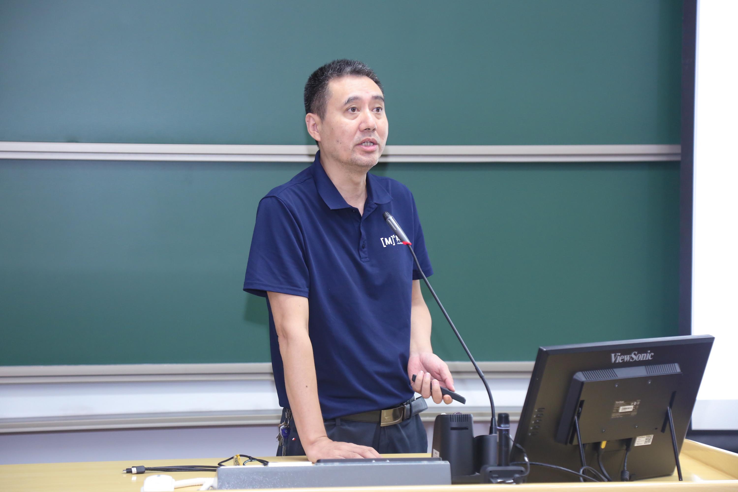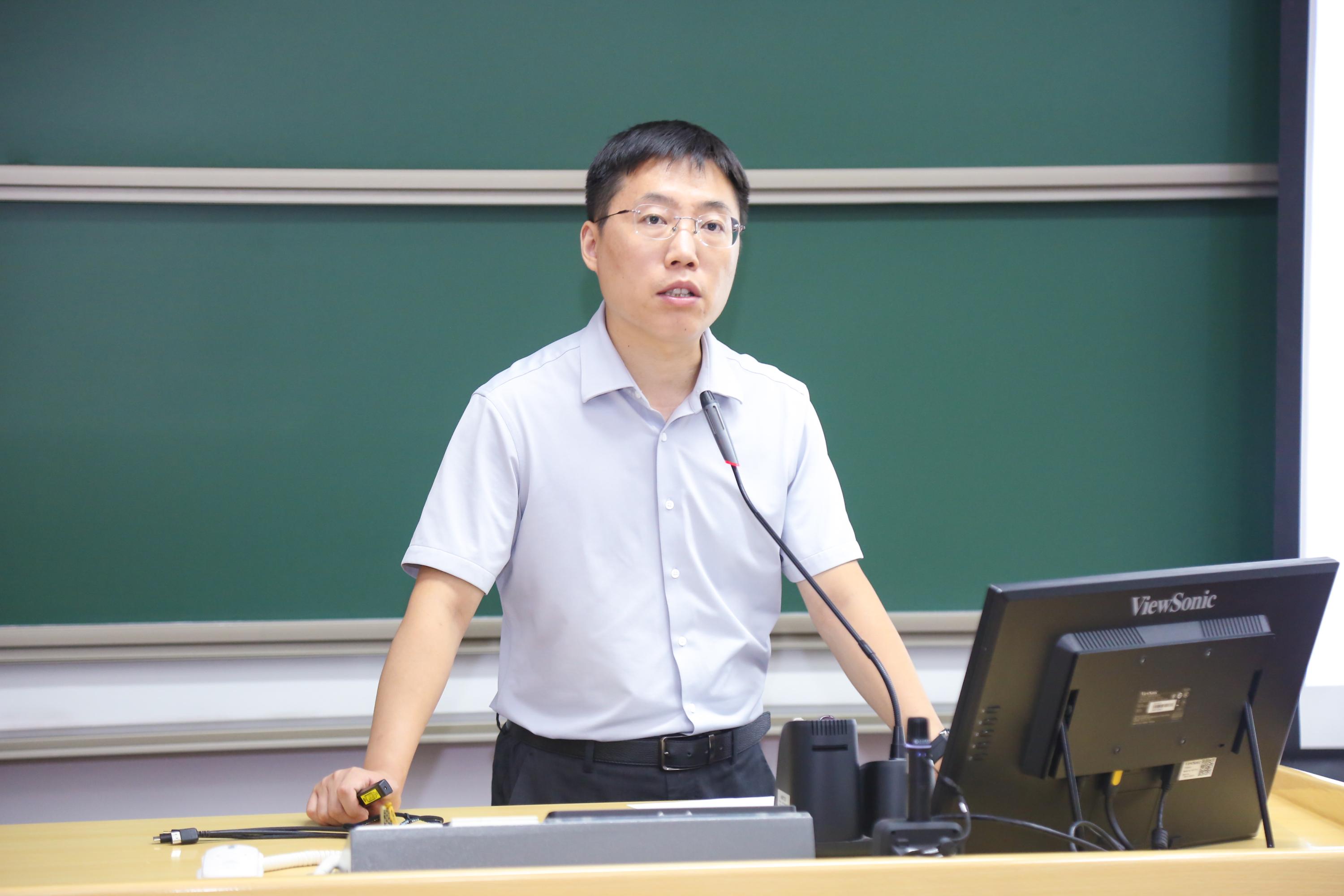 邓斌向大家介绍了学院的全方位概况。他从学院基本情况、专业建设、学生管理和行政服务等角度全面详尽地带同学们认识信科。邓斌特别强调了北大信息学科所承载的悠久历史与辉煌成就,展现了其庞大的学科体系与宏伟的发展目标,让同学们对信科有了更加全面而深刻的认识。