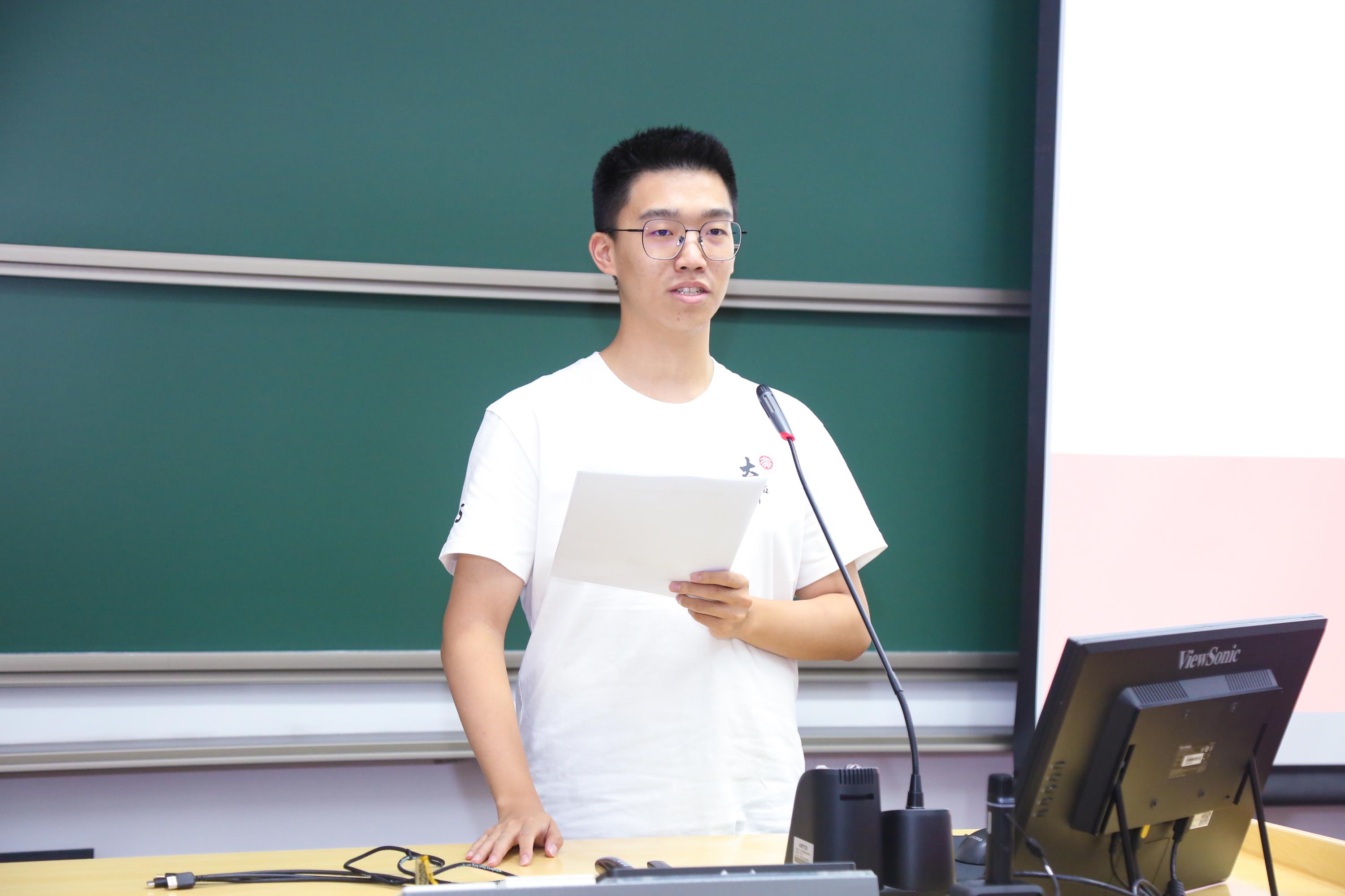 2021级的朱展彤作为在校生代表分享了自己在信科三年学习生活中的感悟与经验,给学弟学妹们提供了宝贵的经验与建议。他建议同学们要调整心态面对大学学习,避免无意义的内耗,并勇于跳出自己的舒适圈;不要给自己设限,要勇于尝试,努力找到自己感兴趣的方向或领域。他建议同学们珍惜宝贵的大学时光,切莫虚度。