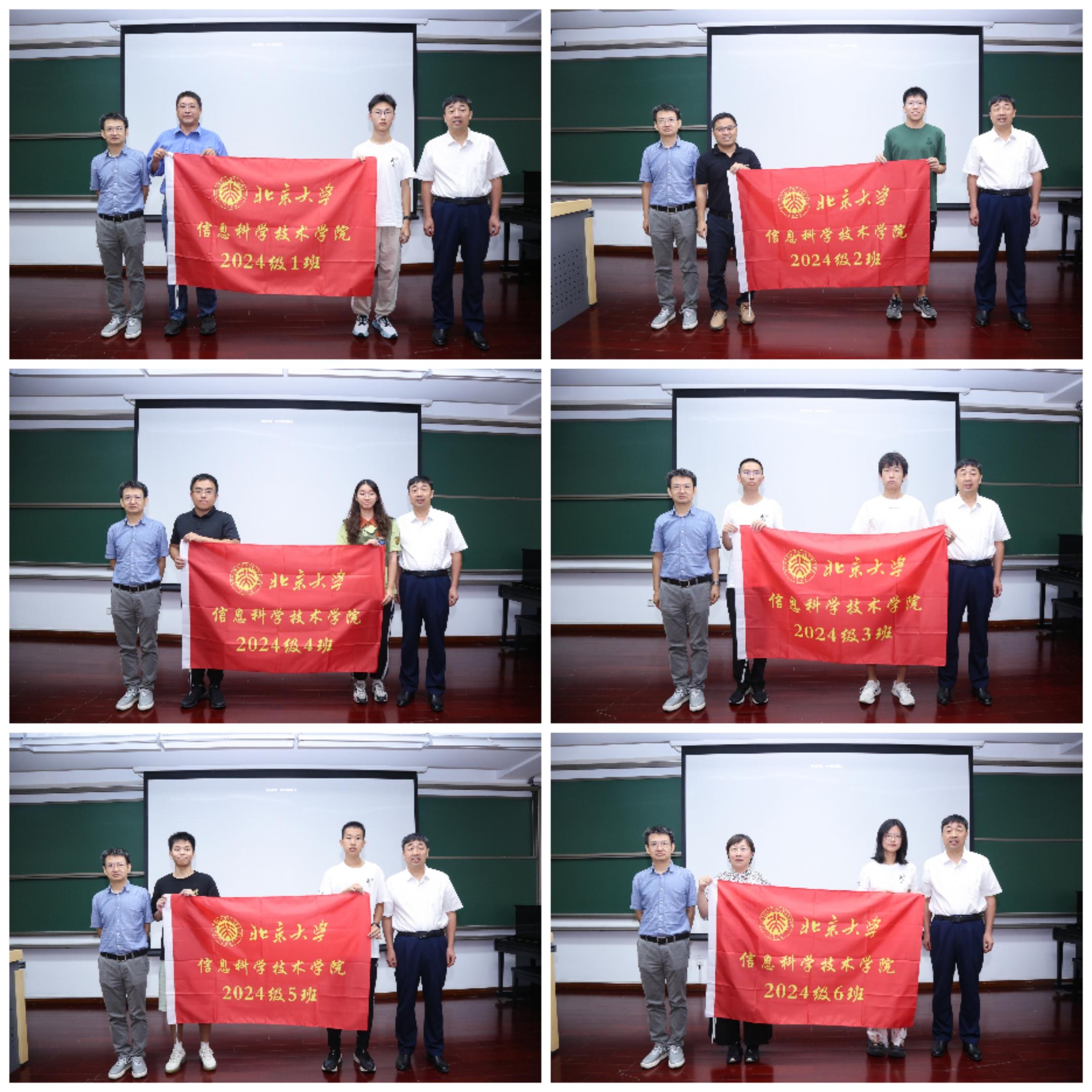 严敏杰和侯士敏向2024级各班新生代表授予班旗,以增强班级凝聚力、营造积极向上的班级氛围。