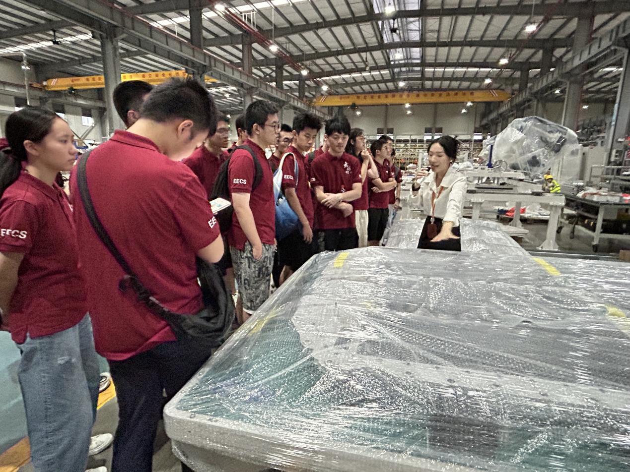接着,同学们参访了宁德思客琦智能装备有限公司,了解其从上海起源返回宁德走向世界,从自动化生产轻工业产品逐步向生产新能源锂电池的转变经历,同时,同学们还参观了宁德思客琦智能装备有限公司的生产车间,领略了自动化生产车间的技术革新。在学习新能源电池制造工艺之余,同学们也受到思客琦公司的发展的启发,表示要紧跟时代潮流,以北大智慧解决时代所需,顺应时代所求。同时大家也认识到技术是发展的第一动力这一重要的结论。