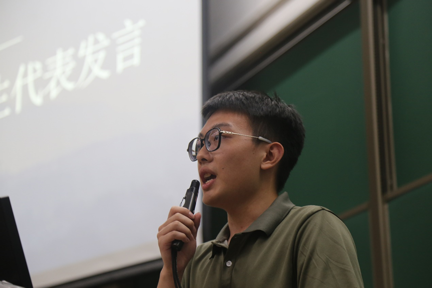 随后,2024 级参训学生代表徐培文发言。他回顾了军训的点点滴滴,分享了自己在军训中的收获和感悟。他表示,军训让大家认识了态度,理解了高度,目睹了风度,感受了温度。让同学们丰满了羽翼,在大学中飞往梦想的彼岸!