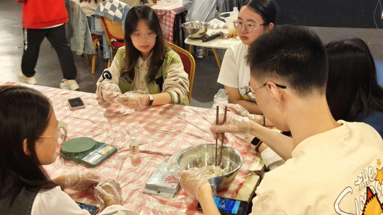 在等待面皮发酵和蛋黄烤制的过程中,主持人安排了场间小游戏“猜汉字”,即在打乱的汉字符号中识别出词语和“燕园AI”,即在AI合成的北大建筑物图片中找出其现实出处。场间小游戏不仅使等待的时光变得更加有趣,也增进了同学们之间的默契和对北大校园的了解。