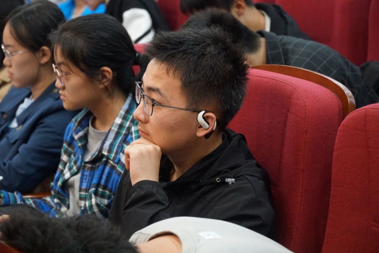 接着,舞台组负责人顾晨阳为大家介绍了舞台组的工作要求。他有着丰富的舞台管理经验,讲话简短而风趣,让大家在轻松的氛围中了解了舞台组工作的多样形式和独特要求。他特别指出,只有舞台表演与合唱歌声有机融合,才能打造出一台完美的演出,真正打动观众的心。后勤组负责人王熙理介绍了后勤组的工作职责。他鼓励后勤组的同学积极参与到活动的各个环节中,默默地在幕后付出努力,确保所有工作顺利进行。他号召后勤组全力以赴,为大家提供最完善的后勤保障,助力同学们的排练如虎添翼、事半功倍。相信在后勤组的努力下,大家一定能安心排练,共同实现歌会的圆满成功。