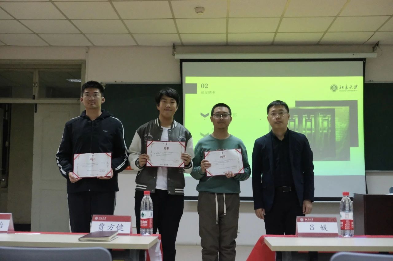 贾方健老师为刚刚卸任的团委各部门负责人及学生会主席团成员颁发感谢状。