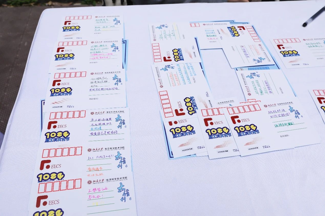 今年首创的“教你一招”游戏,欢迎每位同学在1024定制明信片上畅所欲言,既能提出自己的疑问,也能其他同学提出对的问题进行解答,搭起同学们沟通的桥梁,实现跨年级、跨院系交流,引发同学们对信息科学的思考和关注。
