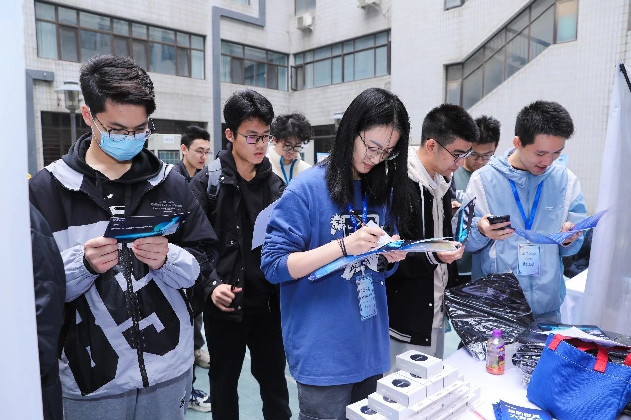 合作企业九坤和荣耀带来的趣味答题挑战赛让不少同学驻足,同学们在此让智慧与想象自由翱翔,在解题的挣扎与完成的欢愉中尽情感受信息与数字的魅力。