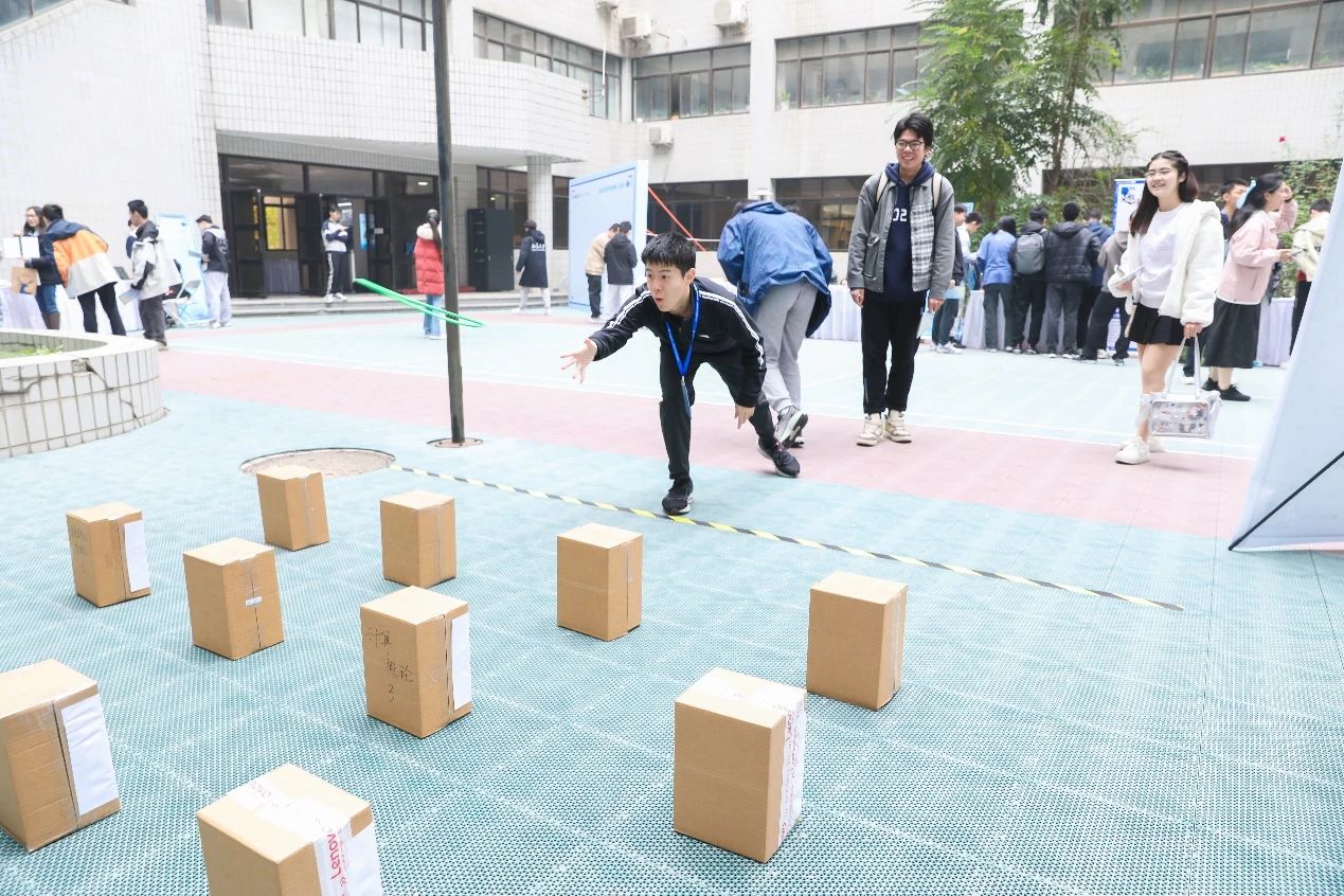 理科一号楼中庭举办。本次活动由信科团委指导、信科学生会组织开展,将学科趣味游戏、专业社团展示、合作企业交流等模块有机融合,充分展现了信科青年的独特才华与青春活力。
