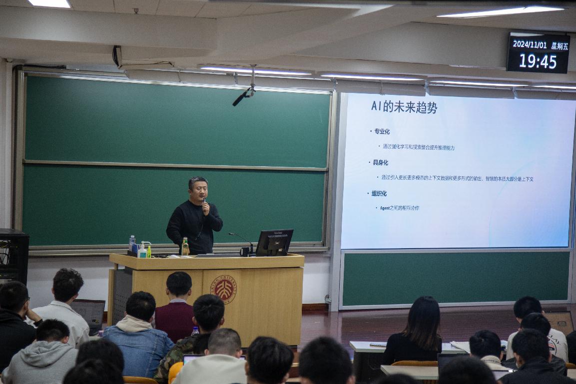 在现场提问环节,同学们踊跃发言。当被问及AI心理咨询师的安全问题时,任永亮先生从服务安全和数据安全两个方面做出了回答。在服务安全方面,人类心理咨询师自身的情绪和需求可能会影响他们的服务质量,而人工智能提供的心理服务具有可控性和一致性,拥有更稳定的服务质量;在数据安全方面,随着算力的进步,仅在用户端侧的大模型部署将成为可能,从而实现在无需外部服务器的情况下运行复杂的心理咨询模型,保证数据的隐私性。