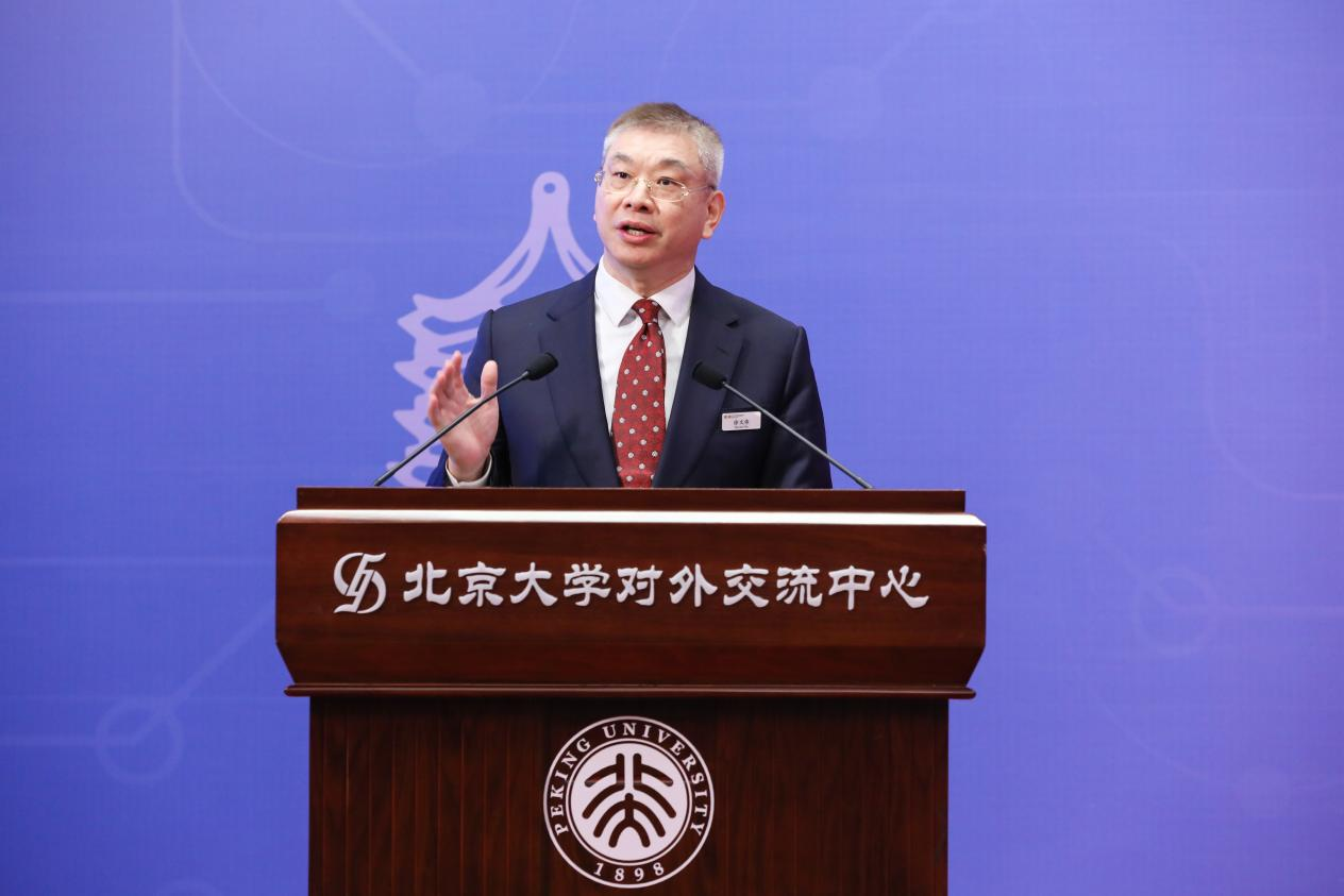 徐文伟在致辞中鼓励同学们培养自由探索的精神,充分认识产业当前面临的挑战,要有勇气开拓创新,大胆踏上前人未曾涉足的道路。同时,他建议大家应当广泛涉猎知识,深入了解世界运行的规律,充分借助北大的优质平台资源。此外,他鼓励同学们积极走进产业一线,走进实验室,在实践中积累经验、增长才干。