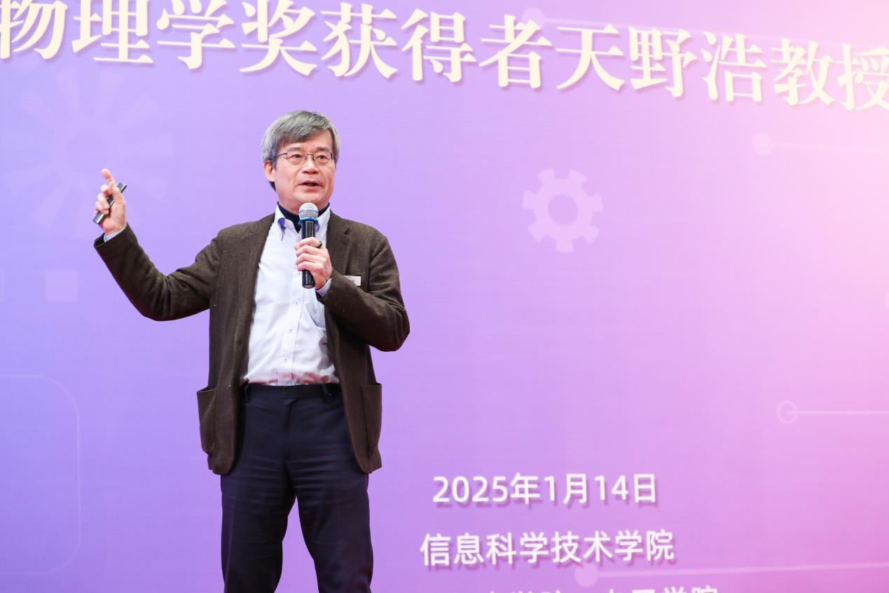 “大学堂”顶尖学者讲学计划支持。天野浩首先以人工智能发展的三次浪潮和计算机科学家杰弗里·辛顿终获诺奖为例,指出持久的努力对于创新的必要性。随后,他通过自己在蓝光LED研究方面的具体经历,进一步说明了持之以恒的重要意义。天野浩认为,实现蓝光LED,进而实现基于LED的平板显示是一项可以改变世界的工作,这一目标始终激励着他进行不懈探索。在那时,实验室经费紧张,许多设备需要学生自制。此外,在很长一段时间里,相关的实验都结果不佳,无法成功。尽管如此,天野浩始终怀抱着对实验的喜爱和热情,终于在硕士的最后一年成功生长出了高质量的氮化镓晶体。在后续的研究中,他在无人看好、无人关注的条件下坚持探索,终于利用镁掺杂实现了P型氮化镓,并最终制成世界上首个PN结型蓝光LED。从自己的研究经历中,天野浩领悟到了勇气和坚持对于实现目标的重要性。接下来,他又回顾了获得诺贝尔奖前后的趣事,并且讨论了蓝光LED的相关技术和材料在提供清洁的水和空气、实现深紫外激光二极管和实现高效功率器件等方面的应用。在讲座的最后,天野浩还特意介绍了自己的中国合作伙伴、访学学生及其研究领域,寄语年轻一代抓住时代机遇,展示和贡献自己的宝贵才华。