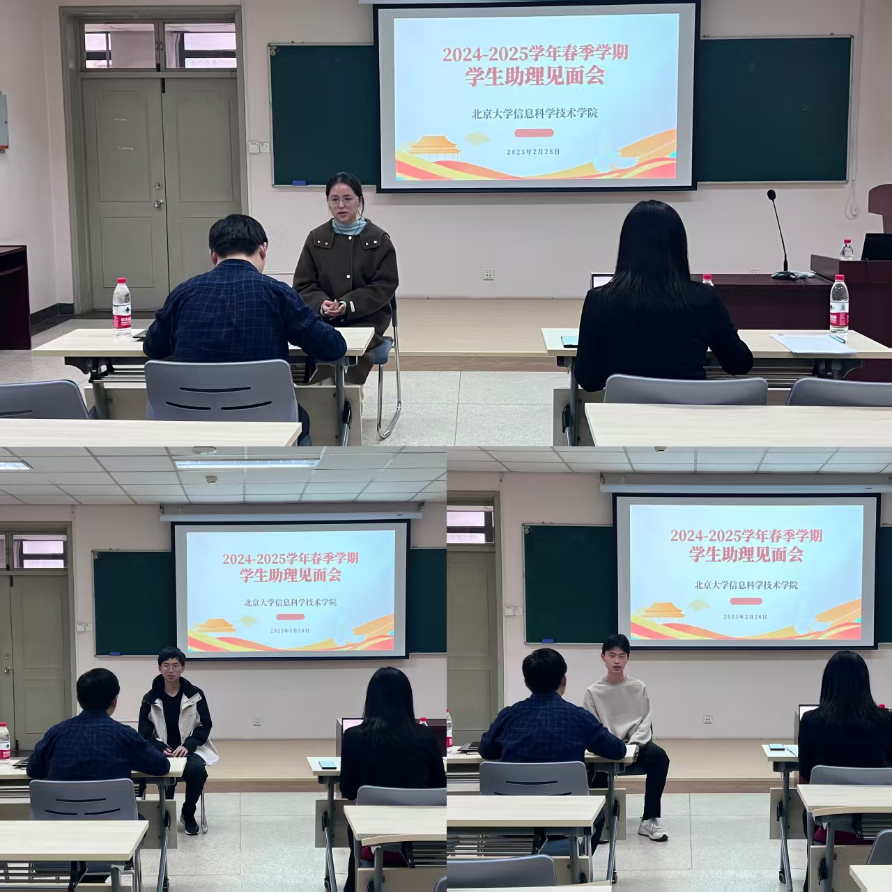 (本科生学院)在理科一号楼1126会议室召开2024-2025学年春季学期学生助理见面会。学院党委副书记贾方健、学工办主任李子奇、学工办干部付晓倩和报名本学期的学生助理们依次进行了面谈。