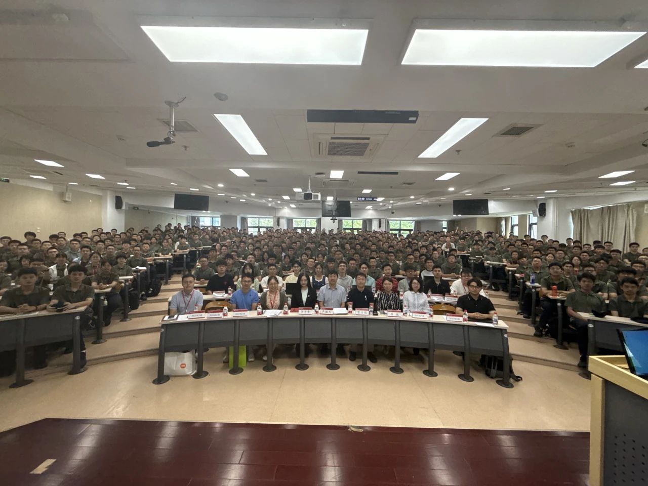 2025级新生军训开训仪式在理科教学楼108教室举行。学院党委书记严敏杰、党委副书记贾方健出席仪式。学工办主任李子奇、团委书记吕媛,各班级领队老师和带班辅导员以及2025级全体参训学生参加大会。开训仪式由2025级年级辅导员梁怿主持。