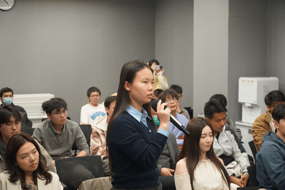 在互动交流环节,同学们围绕语音处理应用及建模、研发路线选择、落地场景革新与模型泛化性、三维感知提升、数据应用对比、机器人动作优化等核心问题踊跃提问。汪老师结合阿里实践逐一回应。互动交流氛围热烈,解答兼具专业性与实用性,为同学们提供了重要指引。