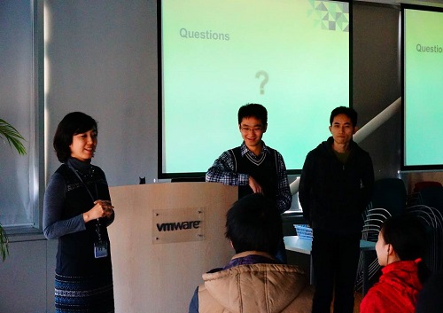 在VMware公司,接待人员首先对VMware进行了简单介绍,包括企业理念、公益文化等等。接着,同学们询问了企业目前研发方向、市场需求方面的内容,并与在VMware工作的北大学长交流,了解了员工具体工作日程及在该公司的发展情况。最后,同学们参观了研发中心、员工工作环境以及销售中心等,了解了研发的设备以及相关工作内容。