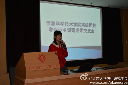 本次交流会的主要目的在于对高团学员寒假期间的返乡调研活动进行总结,并将优秀调研成果进行展示分享,从而促进学员们积极思考、相互学习。首先,学院团委实践部部长何斐对2014年寒假返乡调研整体情况进行总结,并对2014年暑期实践作介绍与动员。接着,由各班推选出的寒假返乡调研优秀个人作优秀调研报告分享。学员们的调研报告精彩而深入,其中,《山东省德州市经济开发区城乡经济发展与生态文明建设相关情况调研》、《江西省吉安市新型民生工程建设发展情况调研》、《江西抚州地区经济调研》、《关于二线城市毕业大学生生活状况观察调研》等优秀报告,围绕“社会发展与民生建设”这一主题,在细致考察实地情况、认真收集详实数据的基础上,针对家乡社会现状中存在的问题进行了分析并提出了解决方案。在最后的交流环节中,同学们除讨论上述团队的实践主题外,也就如何选择合适的实践地、如何提高实践深度等问题发表了各自的见解。