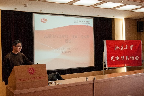 光电信息学会分别在理科一号楼1131报告厅和理科二号楼2736报告厅举行了两场 “探索行业发展,促科研与实践结合”专题技术讲座。讲座分别邀请了中国移动研究院网络技术研究所的技术专家张德朝博士和凌云光子技术有限公司光纤仪器与事业部CTO赵永鹏教授担任主讲人。