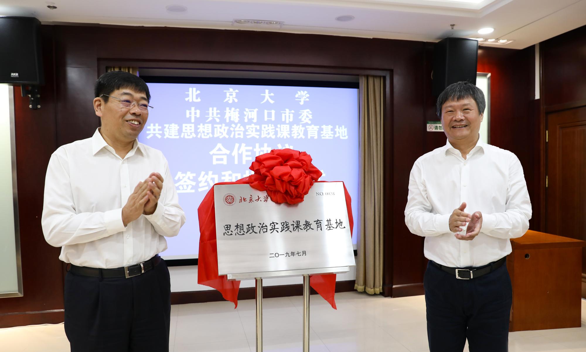 和中共梅河口市委共建思想政治实践课教育基地合作协议》,并由魏中鹏书记和王爱明书记共同为思想政治实践课教育基地揭牌。