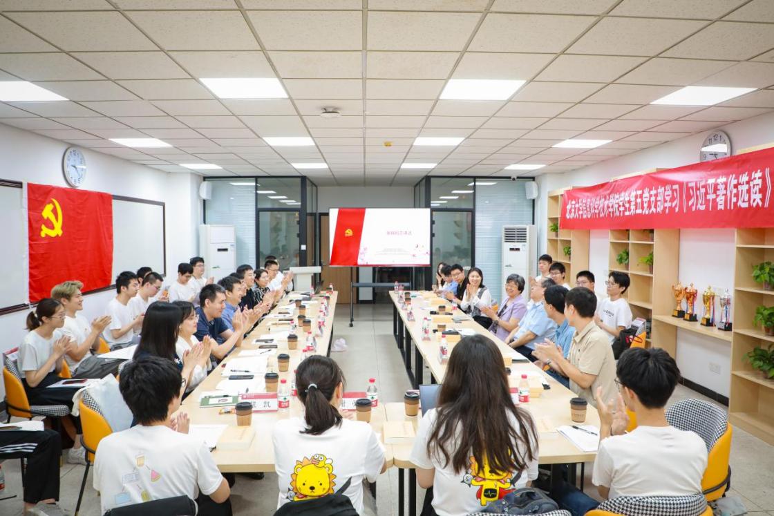 韩景阳表示,参加读书会是一次很好的学习机会,深受启发。她说,本次主题教育活动设计非常有新意,可以看出学校和学院党委高度重视学生党建工作。读书会上教师同学一起讨论、一起交流、一起思考,努力把思想理论的提高落实到工作和学习中去。她高度肯定信科学院主题教育内容丰富、富有成效,学生第五党支部活动扎实。她同时鼓励同学们多读总书记原著,积极进行交流,这样才能全面了解、读懂原著。她还勉励同学们努力掌握先进技术、追逐前沿提升,为民族振兴和科技发展贡献力量。