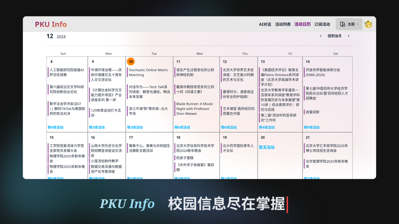 社团切实为校内师生服务,结合日常教学科研工作中的痛点开发维护了多个供校内师生免费使用的项目。PKUInfo利用大模型整合了上百个不同渠道的校内资讯,经过自动筛选发布于网站上。PKUInfo是最能体现LCPU风格的项目,从几名同学在群里的吐槽,随后大家共同酝酿出打造PKU信息汇总平台的想法,几个月后,第一个版本公开发布。开发小组结合大家的反馈,利用最新的技术,在今年推出了大模型智能问答服务。迄今为止,PKUInfo已为千余名同学提供了准确高效的校内资讯,极大地丰富大家的课余生活,也为同学们传递了优质的学术信息。社团创建并维护的 PKUTeX 为同学们提供高效的在线 LaTeX 编辑协作体验。无论是复杂公式还是特殊排版,无须繁琐的配置,仅需打开网页,即可开始创作。目前,PKUTeX 平台共服务两千余名同学,托管超七千份文档,为同学们的报告和论文撰写提供极大便利。在开发PKUTeX项目的过程中,我们还进行了社区化运营的尝试,不仅将整套项目代码开放给其他高校使用,外部贡献者也能为其贡献自己的智慧。我们希望我们的项目不仅能够服务校园,也希望为更多的同学带来帮助。而 PKUGit 则弥补了校内缺失的代码托管服务,为关键科研项目代码提供安全、自主、可控的存储环境,已经成为计算机系统导论等课程教学的必备工具。