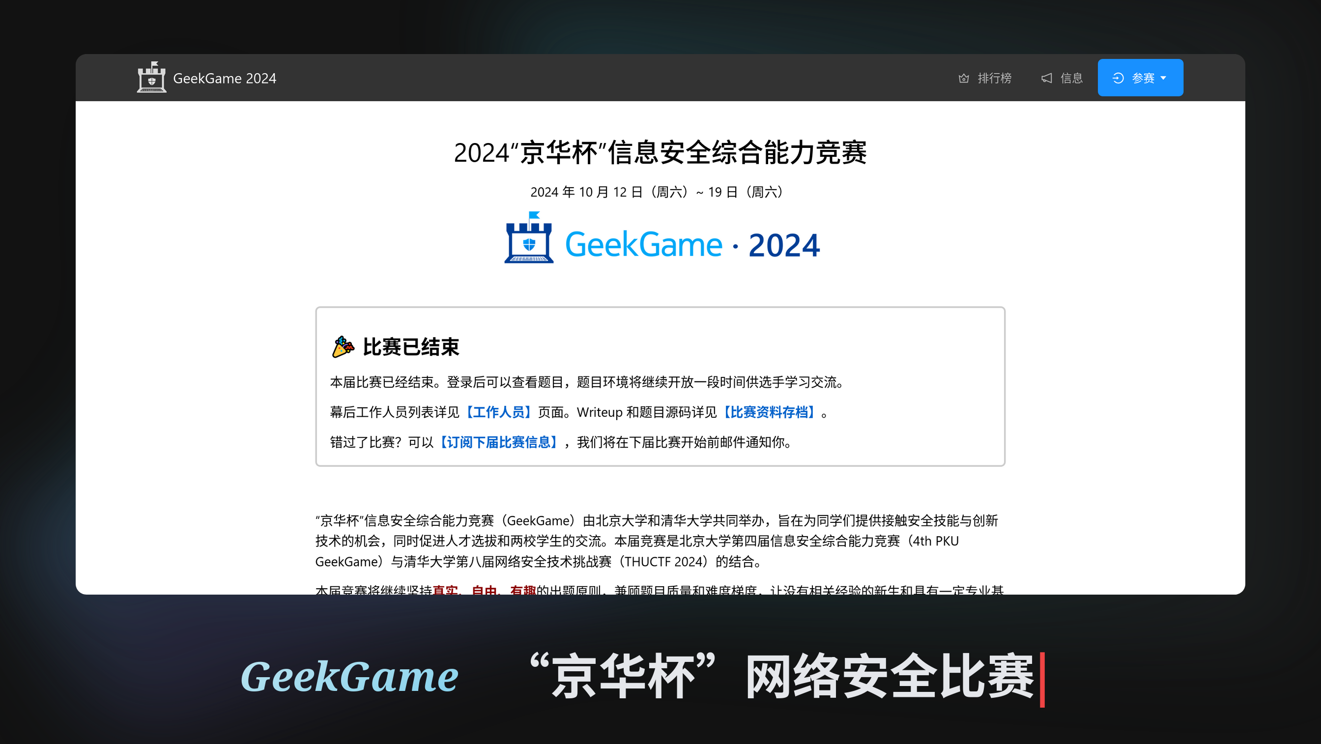 社团每年举办两大广具影响力的赛事。HPCGame 是全球首创的普及向超算比赛,每年吸引全球 80 余所高校上千名同学参与,为我国超算人才培养构建平台,显著提升北大在高性能计算领域的国际声誉。GeekGame 则聚焦于安全技能与创新技术的实践应用。赛题不仅结合同学们日常生活中的兴趣爱好,让同学们在趣味中收获知识,也精心设计了难度梯度,让新手也能成就满满。更有友好的入门讲座,让同学们在实践中学习新技能,充分挖掘自身潜力,比赛激励同学们在计算机科学领域深入探索,也为培养具备跨学科视野的综合性人才提供了有力保障。