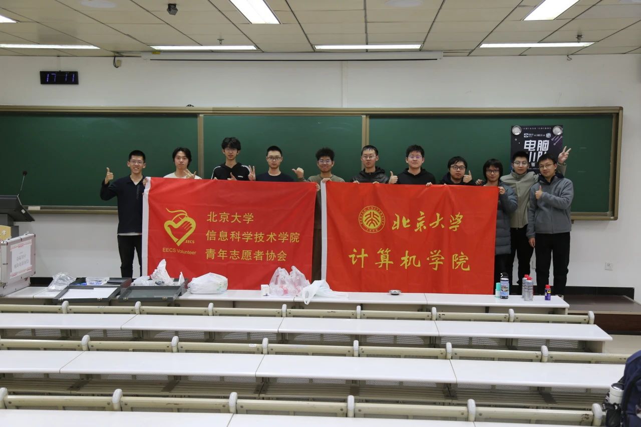 中午12点,维修工作告一段落,计算机小队的同学们也赶到燕园。大家收拾工具,整理教室,稍事休整后乘车赴学院路校区开展下午的活动。