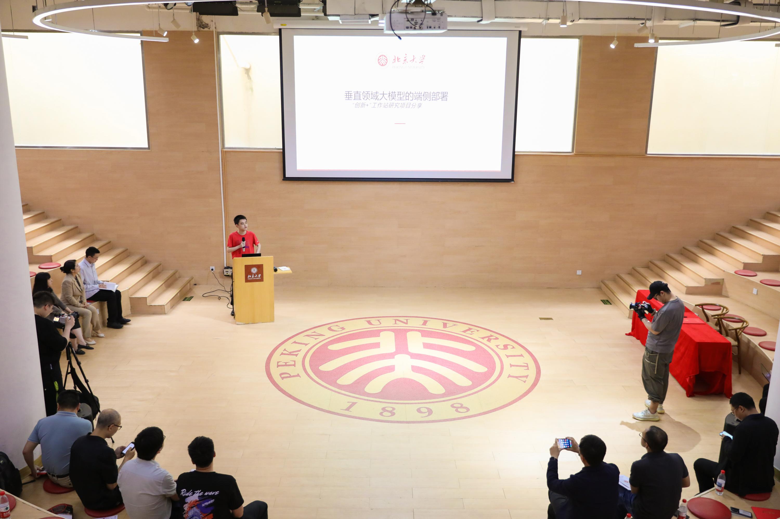 2023级本科生、首届“创新+”工作站课题负责人池开天分享了“可端侧部署的垂直领域大语言模型设计与实现”课题成果及收获。他的分享展现了学生在创新实践中的成长与进步。随后的自由交流提问环节,与会人员进一步深入探讨合作与发展方向,碰撞出了更多创新思维的火花。